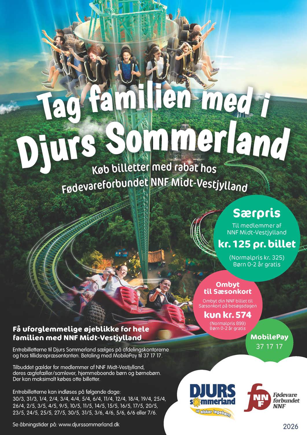 Entrebilletterne til Djurs Sommerland sælges på afdelingskontorerne og hos tillidsrepræsentanten.